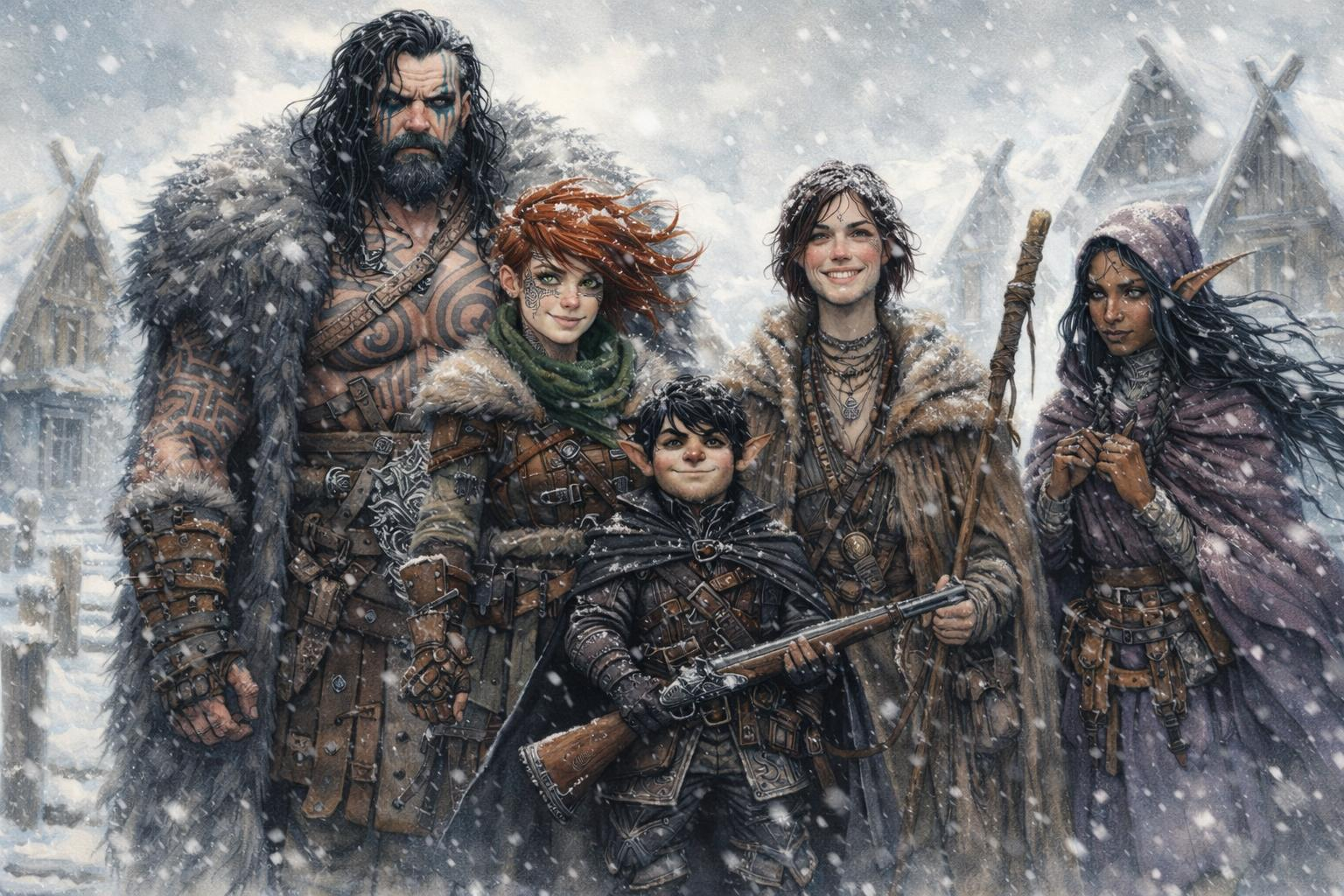 So Grim’s Gang is in the midst of a long (in play time terms) DLC in a rather chillier clime than the tropical islands where they’ve been spending most of their time lately. So here’s an opportunity to re-render them in a more “Icewind Dale” sort of style, as I sort out their baseline descriptions for that adventure