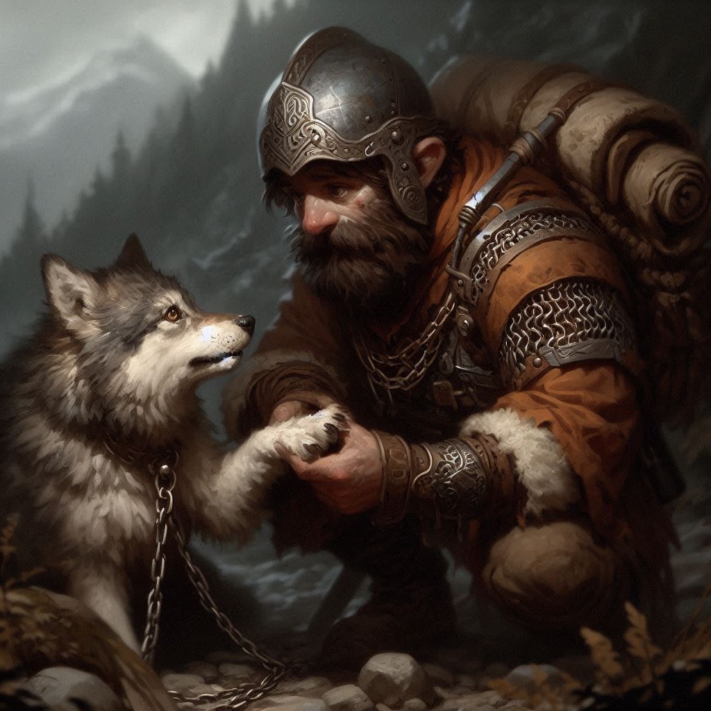 As a child he often snuck out into the forest, and often saw animals caught in such traps. He sometimes saw hunters killing trapped wolves and bears. Or members of a wolf pack struggling between fear and not wanting to abandon a trapped companion. As he grew older and refined his skills, he began sneaking out for a different purpose – sabotaging traps and releasing trapped animals. It was in this activity that he first met Elara – an elven priest of Ehlonna engaged in exactly the same activity. Between his intricate knowledge of the traps and her rapport with the animals they became quite, quite good at it. Too good.